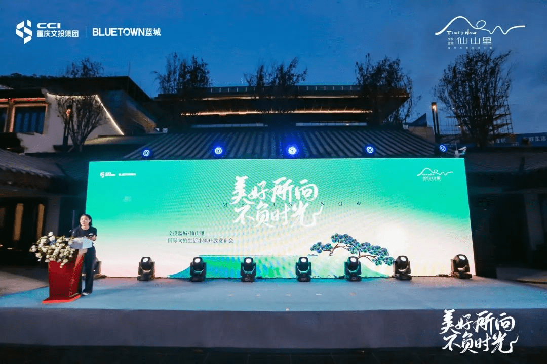 最后,小镇生活启动仪式正式开启,各单位领导步入舞台中央,在一片欢腾的氛围中,在现场来宾的共同见证下,雷火电竞平台集团代表童艺强、蓝城集团代表温智泉、重庆建工集团代表崔斌,与业主代表熊女士将一副巨幅卷轴依次传递并共同展开,「世界的仙女山 国际的仙山里」几个大字惊艳亮相,彰显出古朴苍劲,骨气洞达的气质,象征了仙山里项目的美好愿景,自此标志文投蓝城·仙山里小镇中心正式开放!