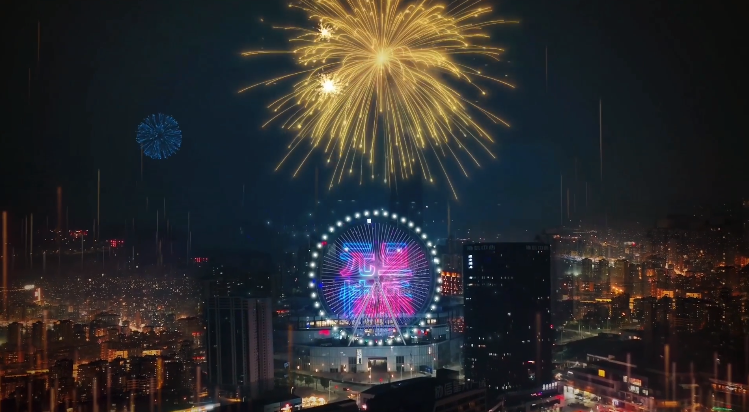 随着零点倒计时的结束,一阵阵数字烟花在摩天轮上空炸开,我们自此开启崭新的2023。