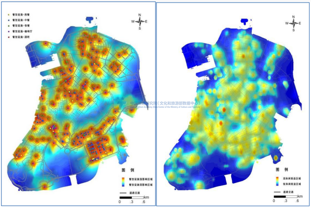 餐饮设施空间布局与文化、商业、休闲设施空间布局的关系,均具有较高的空间关联度。澳门餐饮布局与休闲设施的空间关联度达90%以上、北京餐饮布局与文化商业设施的空间关联度达73%。那些入选米其林、黑珍珠、美食林榜单,本身具有较强市场吸引力的网红餐饮打卡点,其空间分布不仅不具有排他性,反而与文化、商业、休闲氛围高度关联,在布局上抱团、在空间上集聚,最终以美食餐饮街区或综合体的方式呈现。