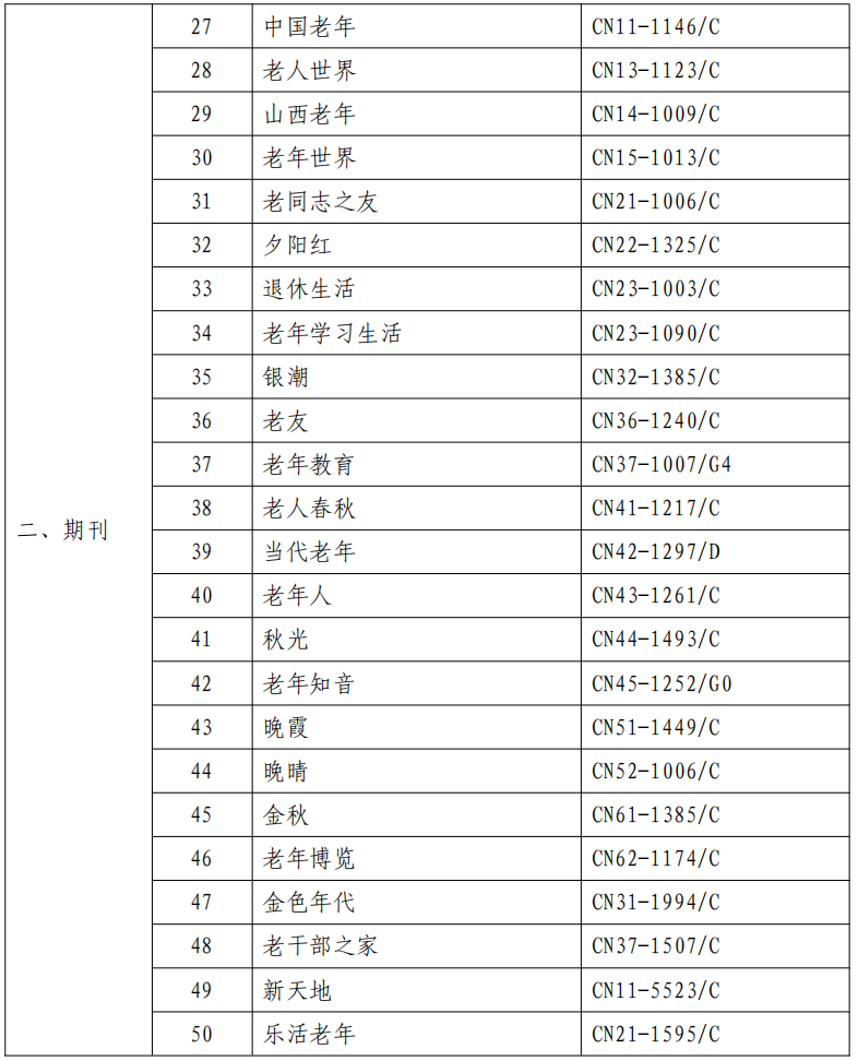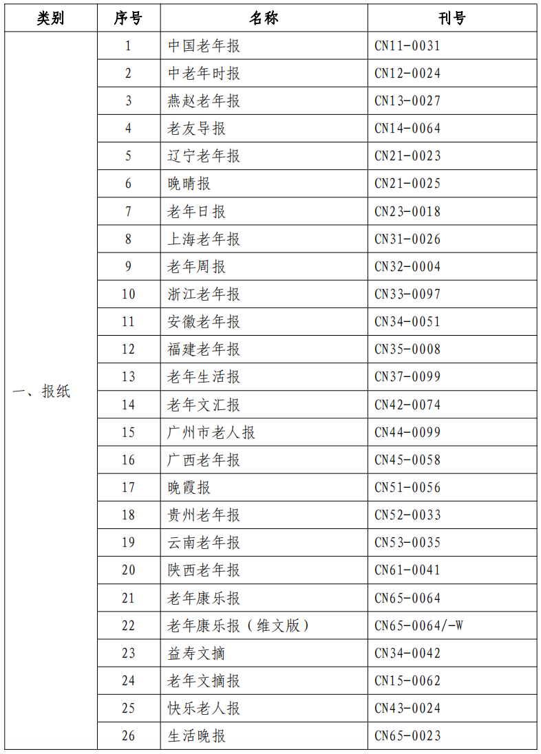 专为老年人出版发行的报纸和期刊名单