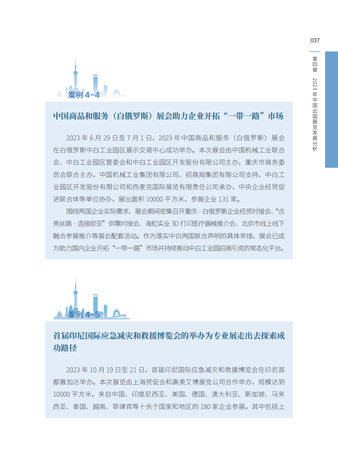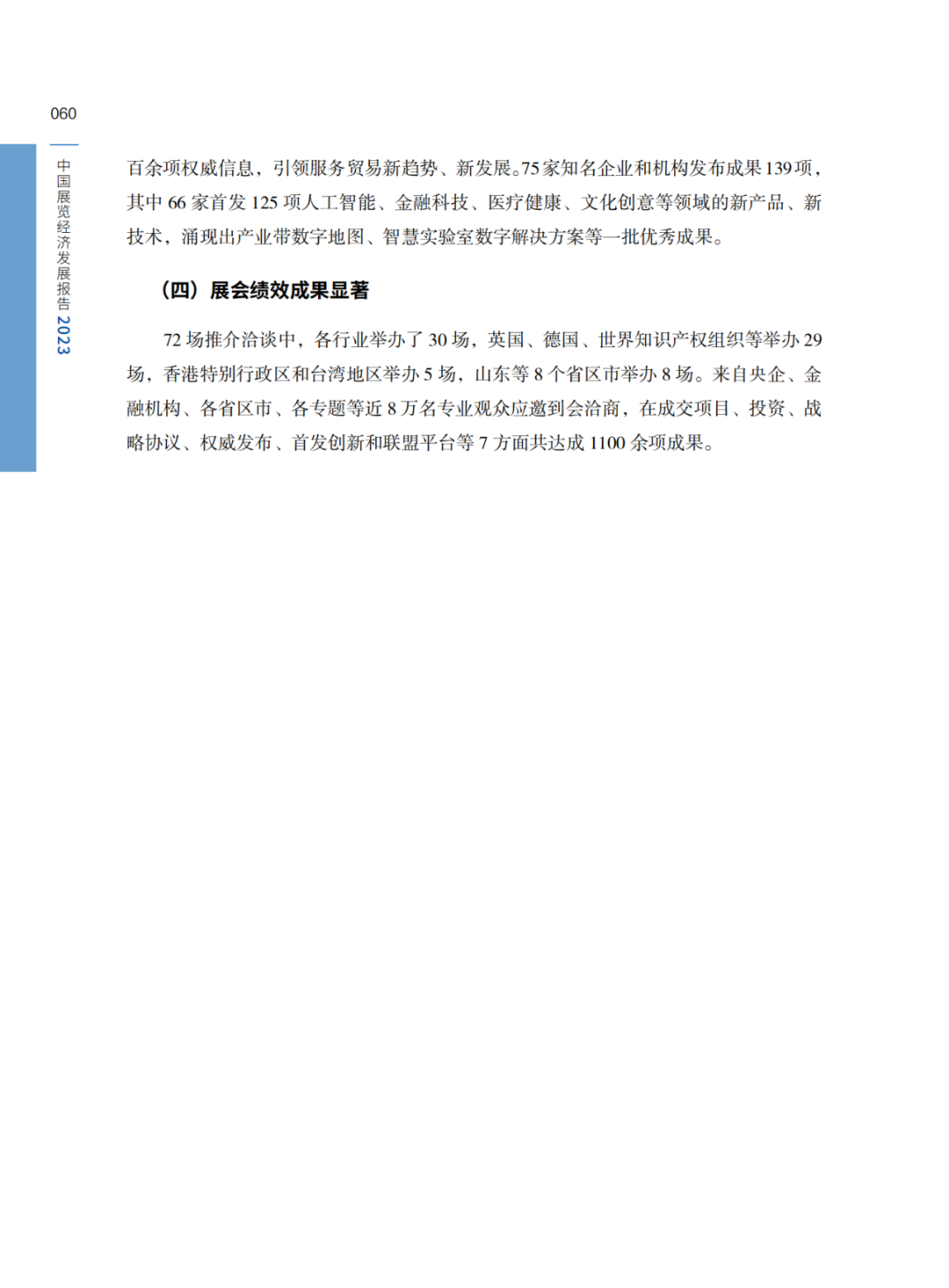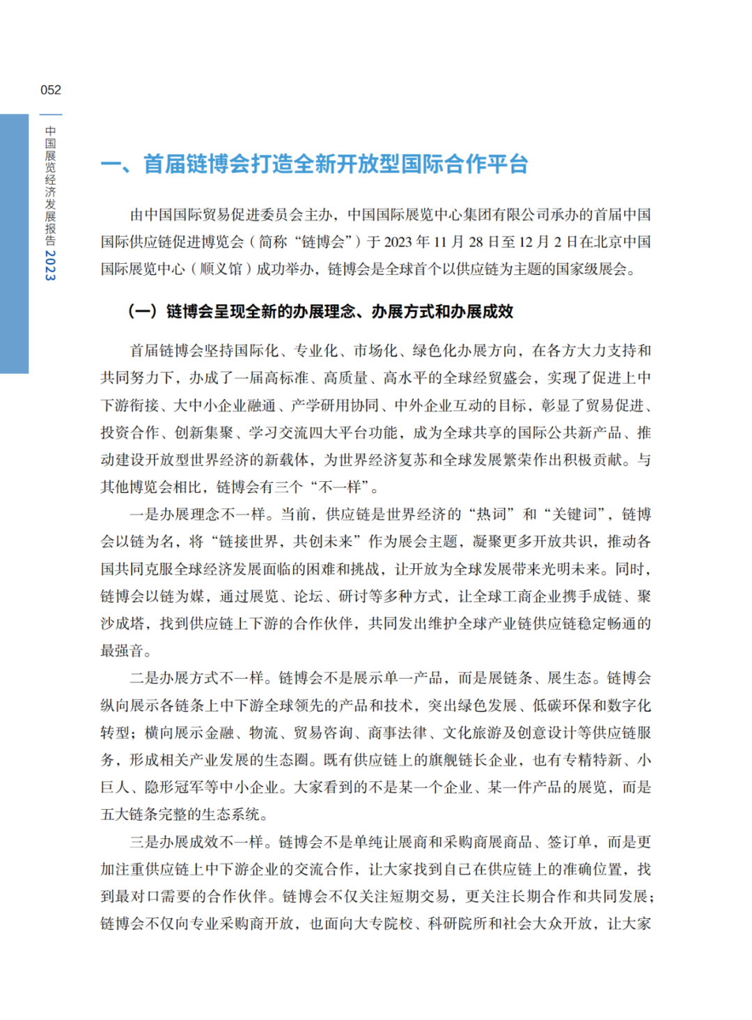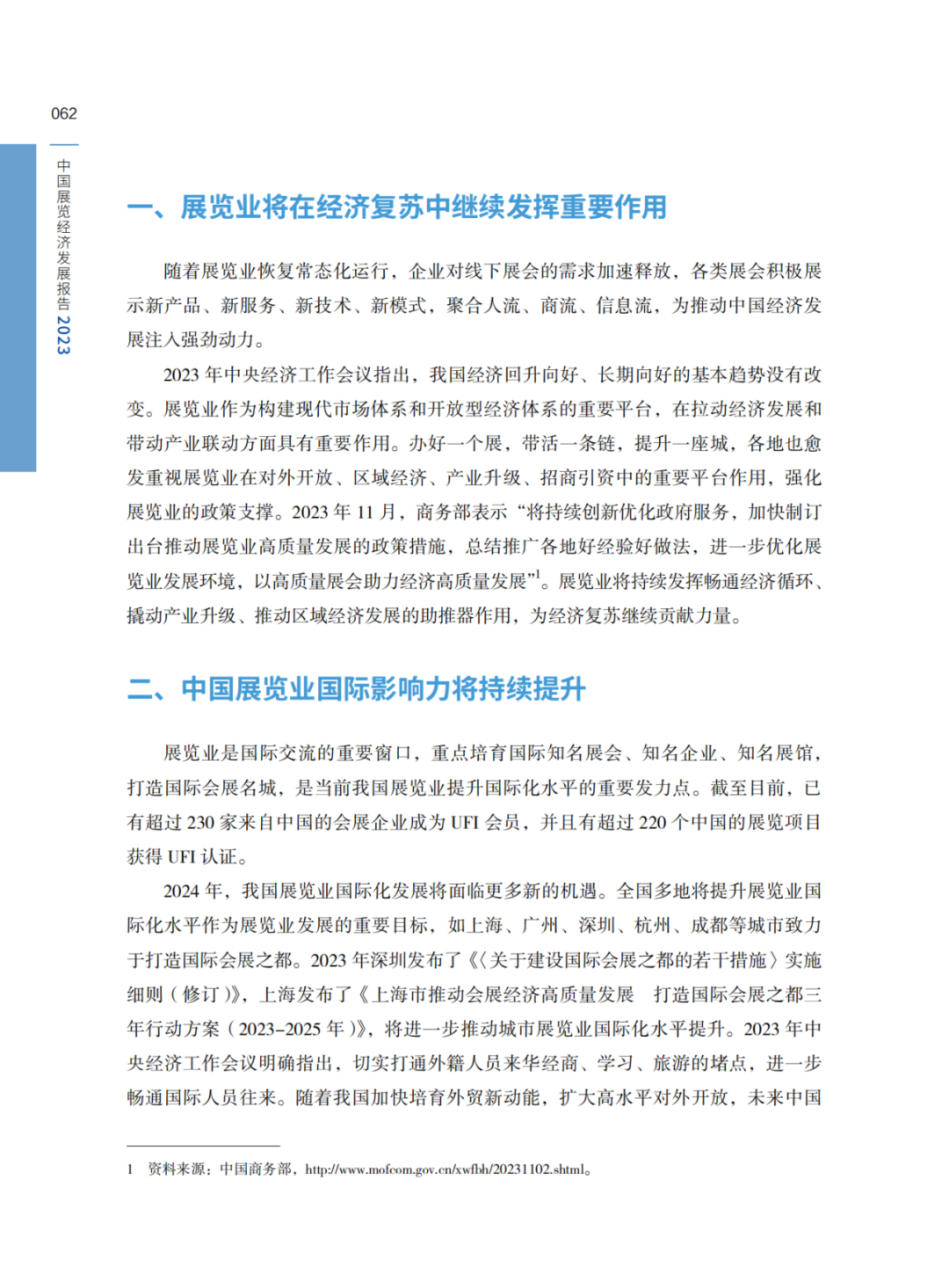 报告显示,国家级展会成为引领展览业复苏排头兵。2023年,各国家级展会全面恢复线下展,进博会、广交会、消博会等展会在规模、成效等方面全面超越疫情前水平。