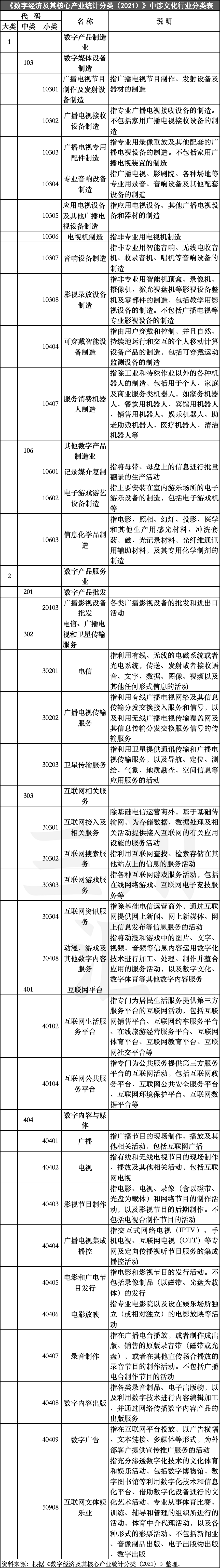 2021年,国家统计局根据G20杭州峰会提出的《二十国集团数字经济发展与合作倡议》,以及《国家十四五规划和2035年远景目标纲要》等重要政策文件,制订了《数字经济及其核心产业统计分类(2021)》,明确定义数字经济及其核心产业的统计分类范围,为准确统计数字经济的发展规模、速度和结构提供了科学规范的分类标准。